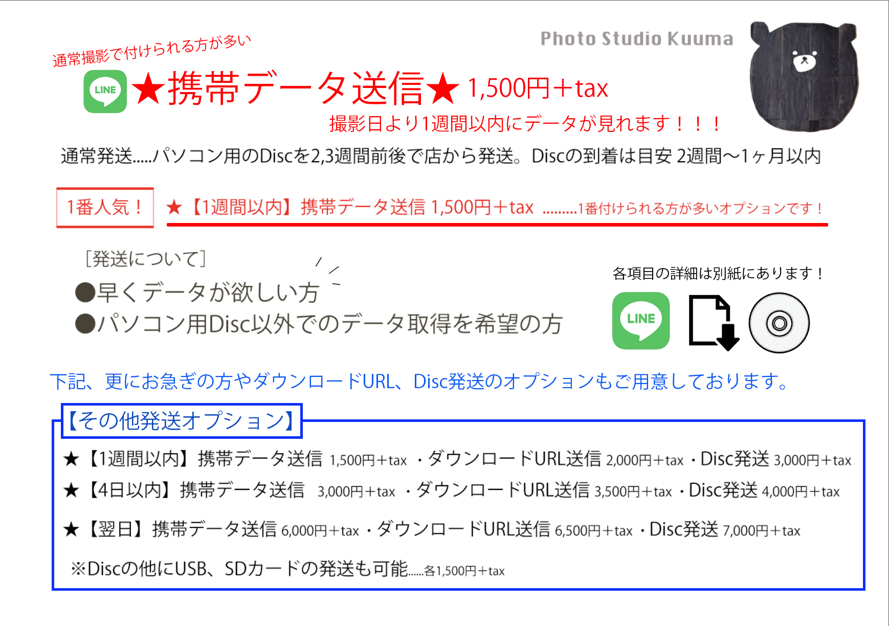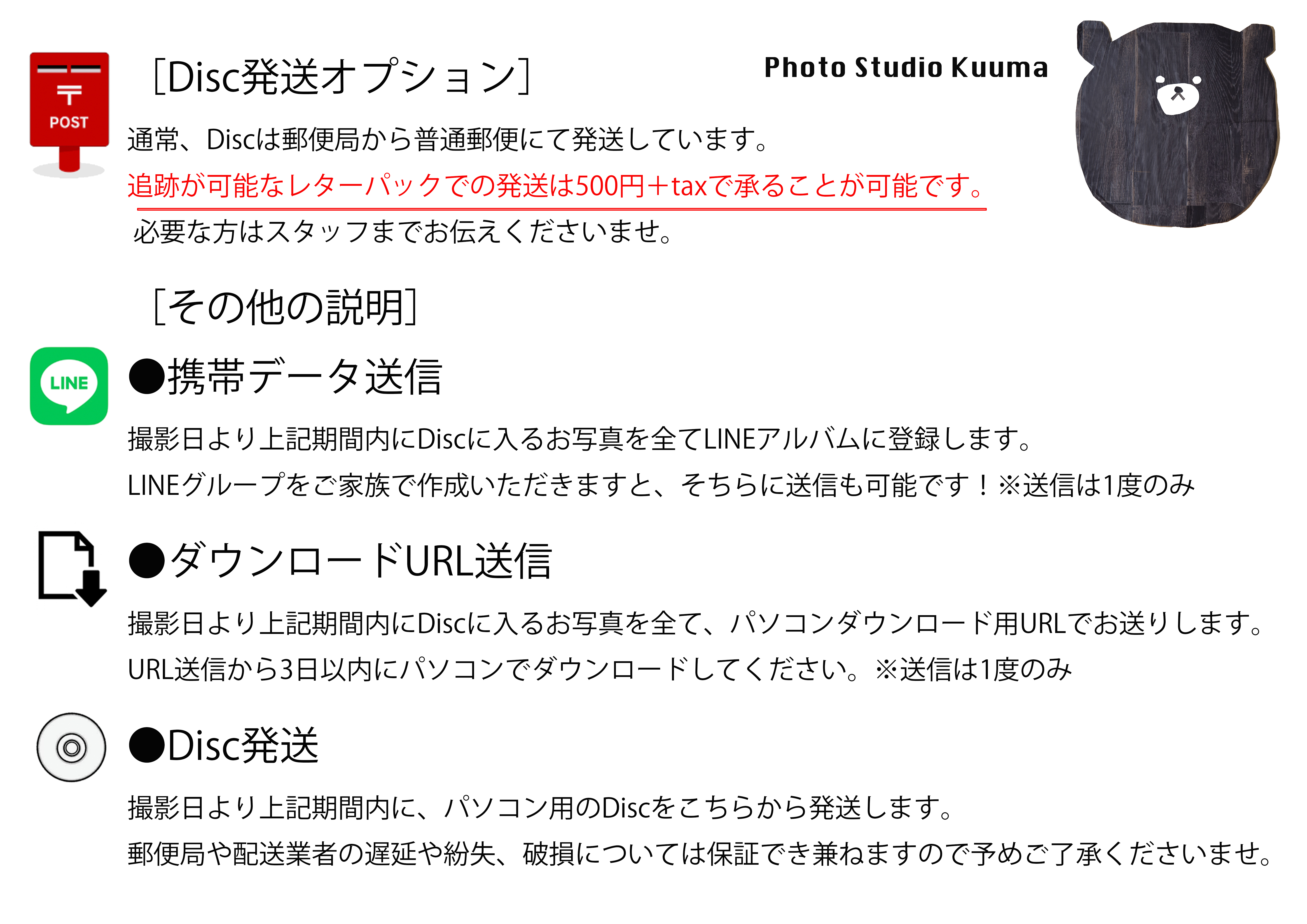 ※全て店舗に取り置き可能です。郵送費(送料含む)は、それぞれに記載しております。